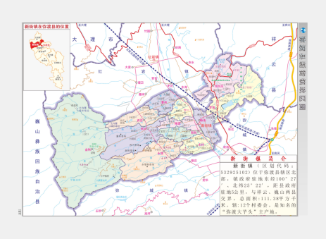 基本情况:新街镇位于弥渡县坝区中北部,辖12个村委会,108个自然村,总人口5.35万人,国土面积124.6平方公里,耕地面积4万亩,平均海拔2320米,森林覆盖率46.5%,年平均气温17.3℃,冬无严寒,夏无酷暑,有“天气浑如三月里,风花不断四时春”之美誉。境内居住着汉、彝、白、哈尼、壮、傣、苗、傈僳、回、拉枯、佤、纳西、布朗、普米、独龙、蒙古、满共17个民族。新街镇距弥渡县城5公里,距祥云高铁站20公里,距大理机场50公里,国道320线、214线穿境而过,弥昌高速年内开工建设,北上大理、东出祥云、南下南涧、西进巍山四向快速出行,交通便捷。2024年,完成一般公共预算收入2091万元,同比增长7.18%。