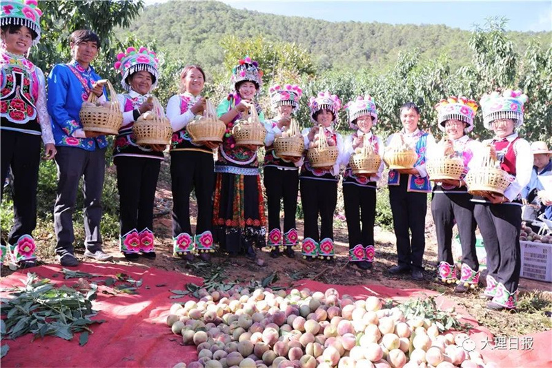 岁月流淌,桃儿慢慢生长。11月,冬桃终于成熟,由于海拔较高,雾本冬桃是弥渡最晚成熟的一批冬桃。步入桃园,枝头上一颗颗粉红色的桃子露出“笑脸”,一眼看过去,沉甸甸的,压得树枝弯下了腰。摘下一颗桃,削完薄薄的皮,咬上一口,桃香浓郁,清甜脆爽之感沁人心脾,真是让人回味无穷。其实,雾本村的水果不仅仅有冬桃,近年来雾本村还发展了杨梅、枇杷、香橼等特色水果,不同季节都可以品尝到不同的水果。