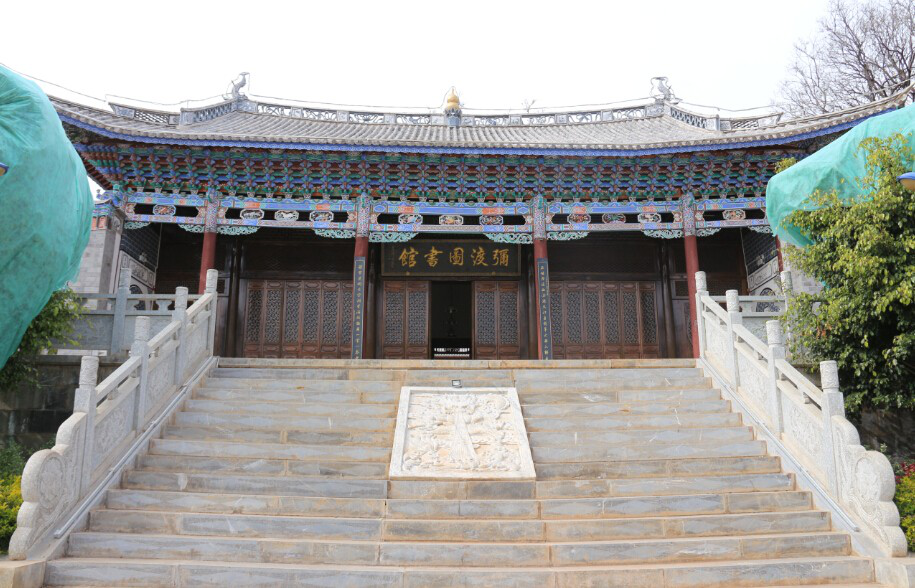 清光绪二十五年(1899)赵州知州钱福嗣,弥渡分府李庆恩,弥邑举人黄玉书倡修至圣殿,大殿坐北朝南,规模宏大。中奉孔子牌位,高一丈余,朱红大漆金字“大成至圣先师孔子位”,由清光绪乙酉(1885)举人弥邑士绅李作梅题书。大殿前檐悬挂对联一副: