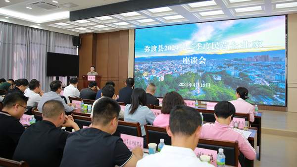 4月11日,弥渡县2024年二季度民营企业家座谈会召开,强调要坚定信心、抢抓机遇,用好政策、提前谋划,加强统筹、密切配合,推动全县大规模设备更新和消费品以旧换新工作取得实效。