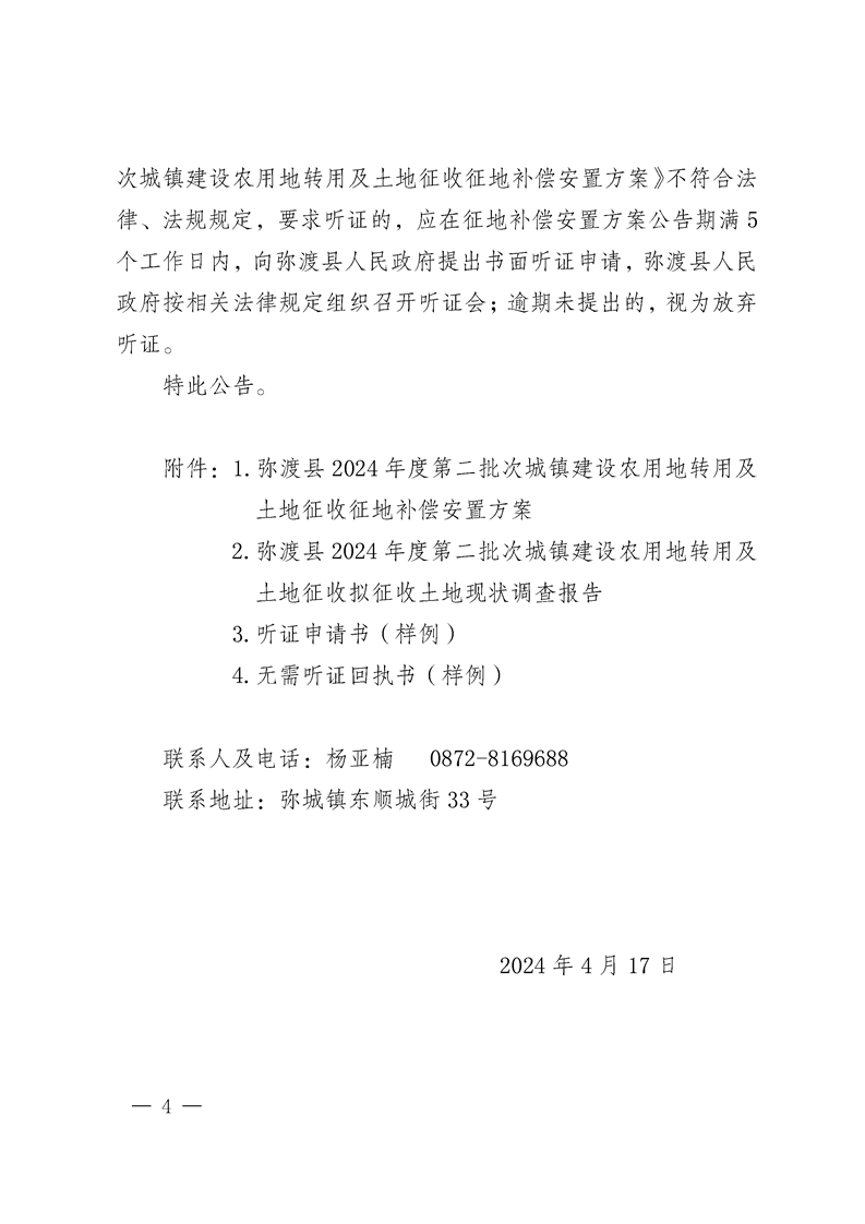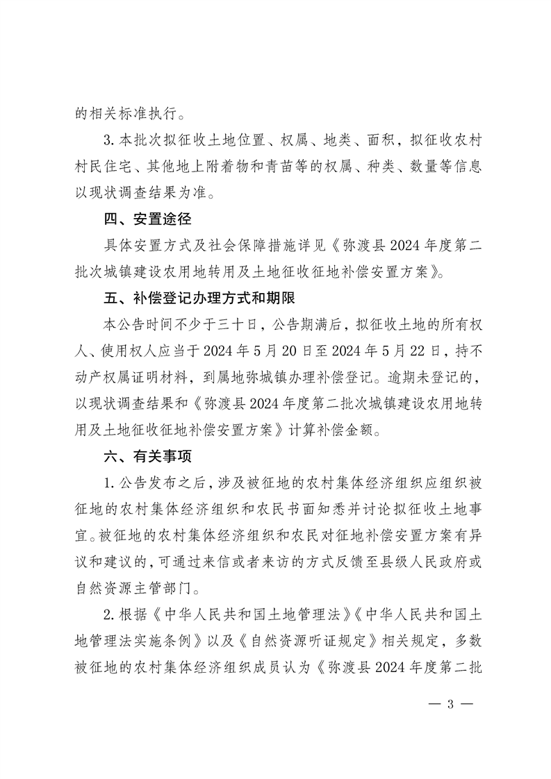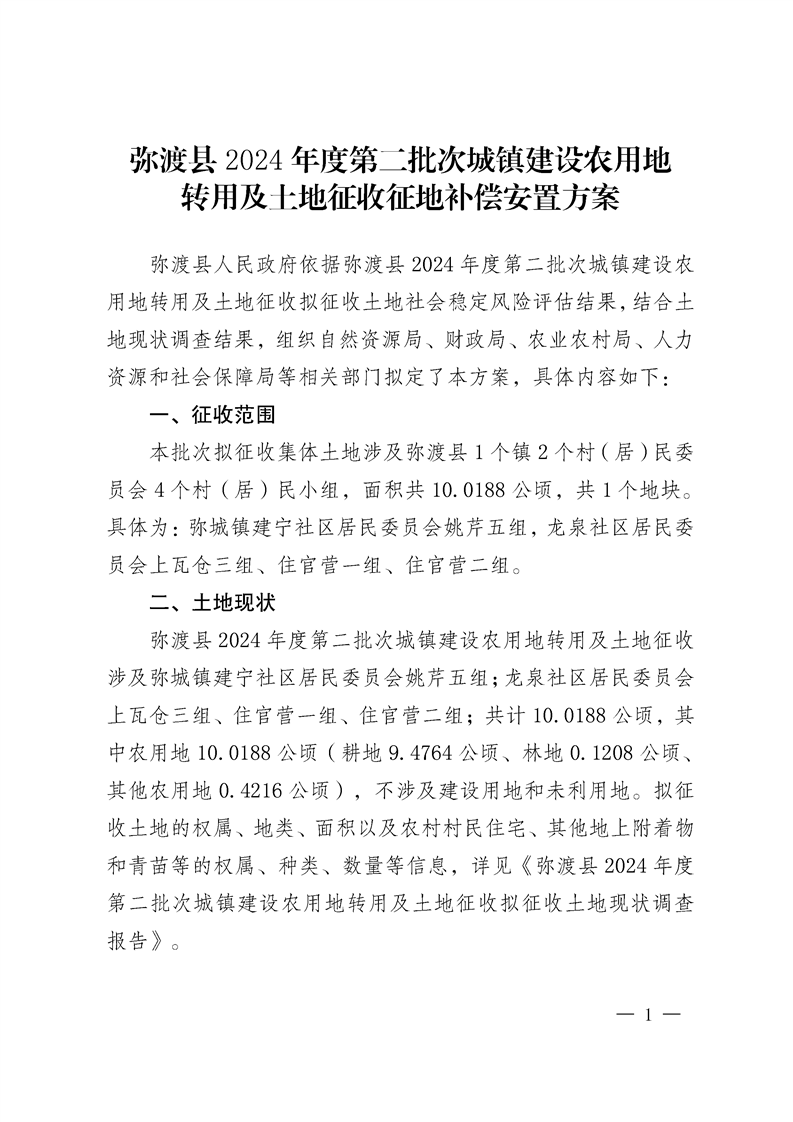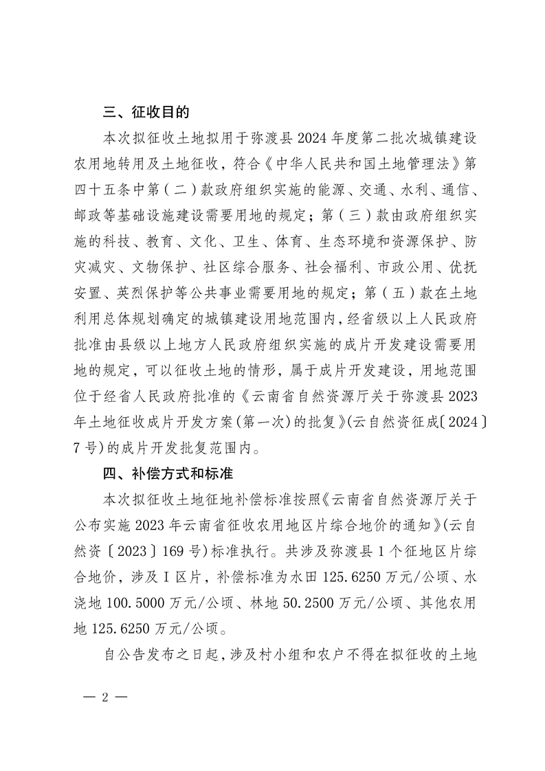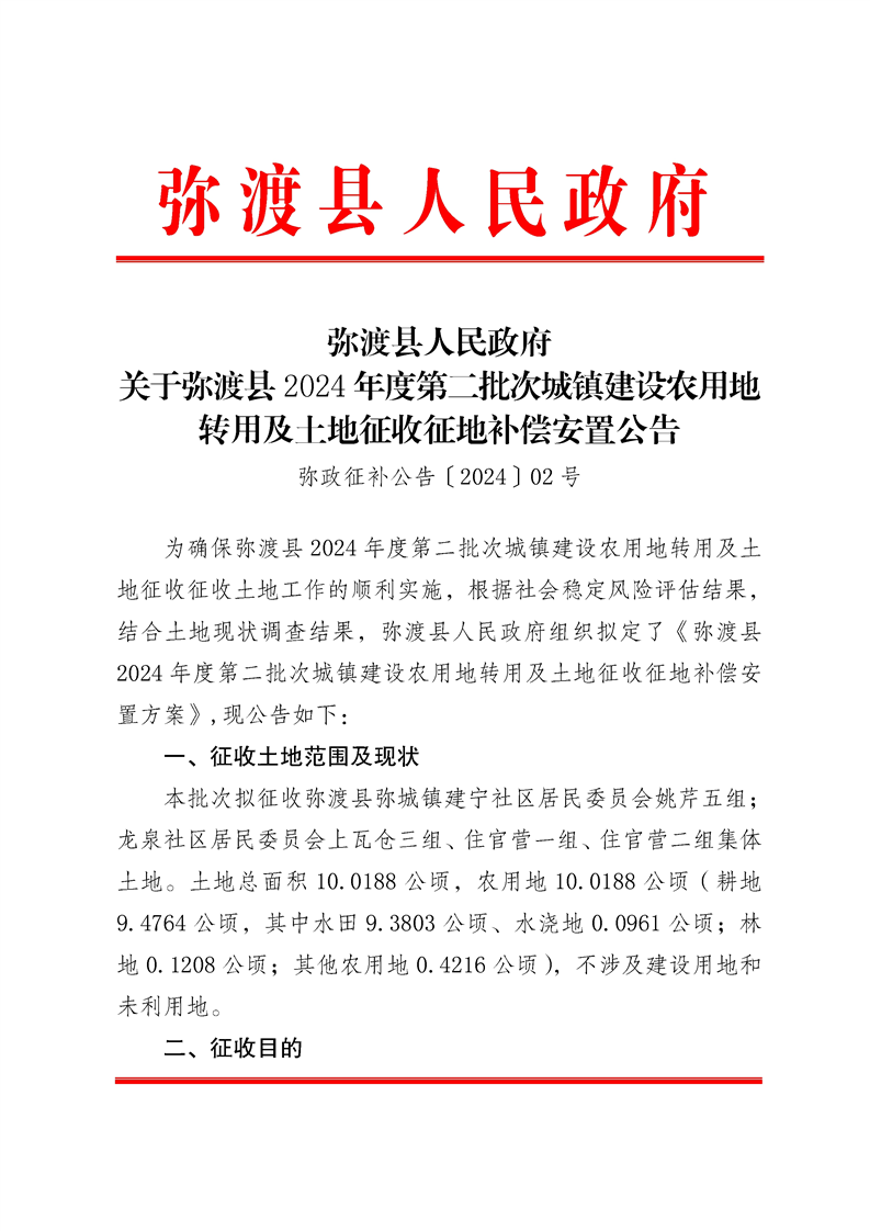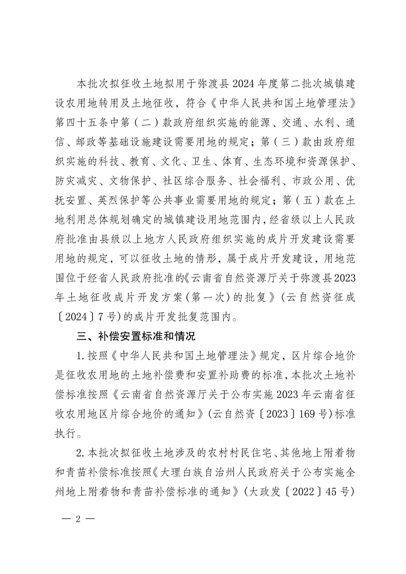 弥渡县人民政府关于弥渡县2024年度第二批次城镇建设农用地转用及土地征收征地补偿安置公告